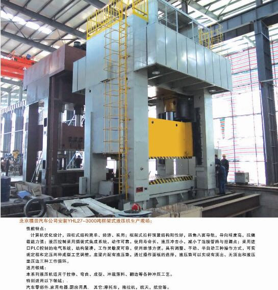 公司能夠為市場提供42大類500余個品種的標(biāo)準液壓機和非標(biāo)專用、精密伺服液壓機。產(chǎn)品廣泛應(yīng)用于汽車、航天、粉末冶金、船舶、輕工、建筑、電子、家用電器等行業(yè),并代表著我國通用液壓機的發(fā)展水平。公司生產(chǎn)、設(shè)計、開發(fā)的液壓機產(chǎn)品完全能夠滿足國內(nèi)不同用戶多層次的需要。
